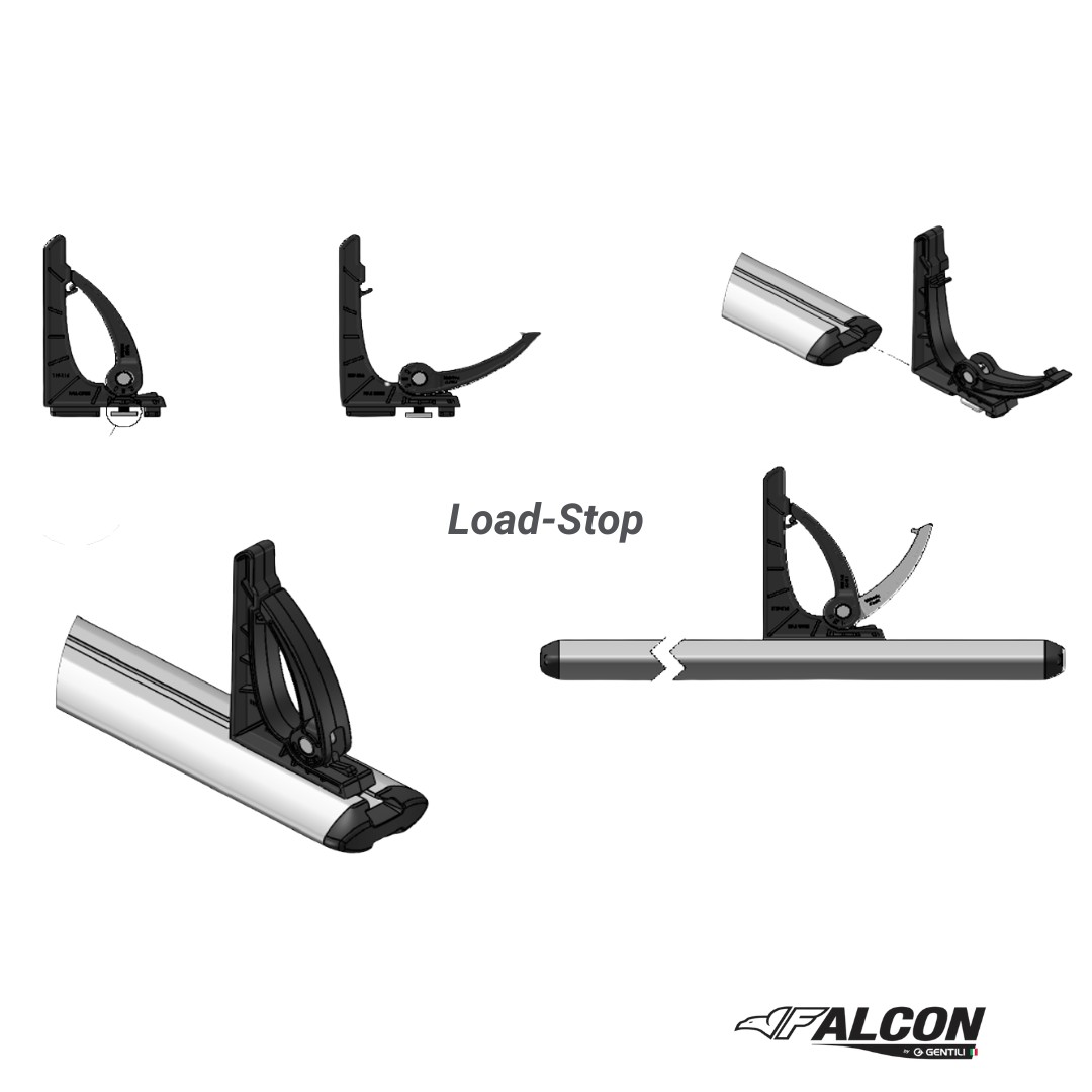 -Load-Stop mit Spannhebel verstellbare Ladeanschläge (verhindern das verrutschen der Ladung auf dem Dach zuverlässig!)