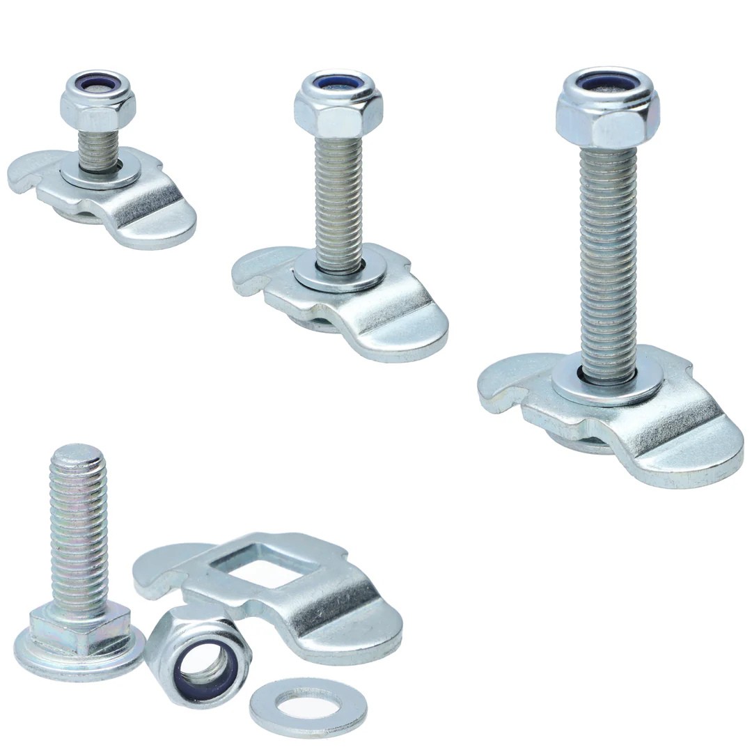 Die Anwendung der Schraubfittings für Airline-Zurrschienen ist denkbar einfach. Den Schraubfitting einfach mit etwas Druck in die Airline-Zurrschiene einführen und in der Länge der Zurrschiene an die gewünschte Position verschieben. Den zu befestigten Gegenstand auf den M8-Bolzen aufstecken und die selbstsichernde Mutter festschrauben.